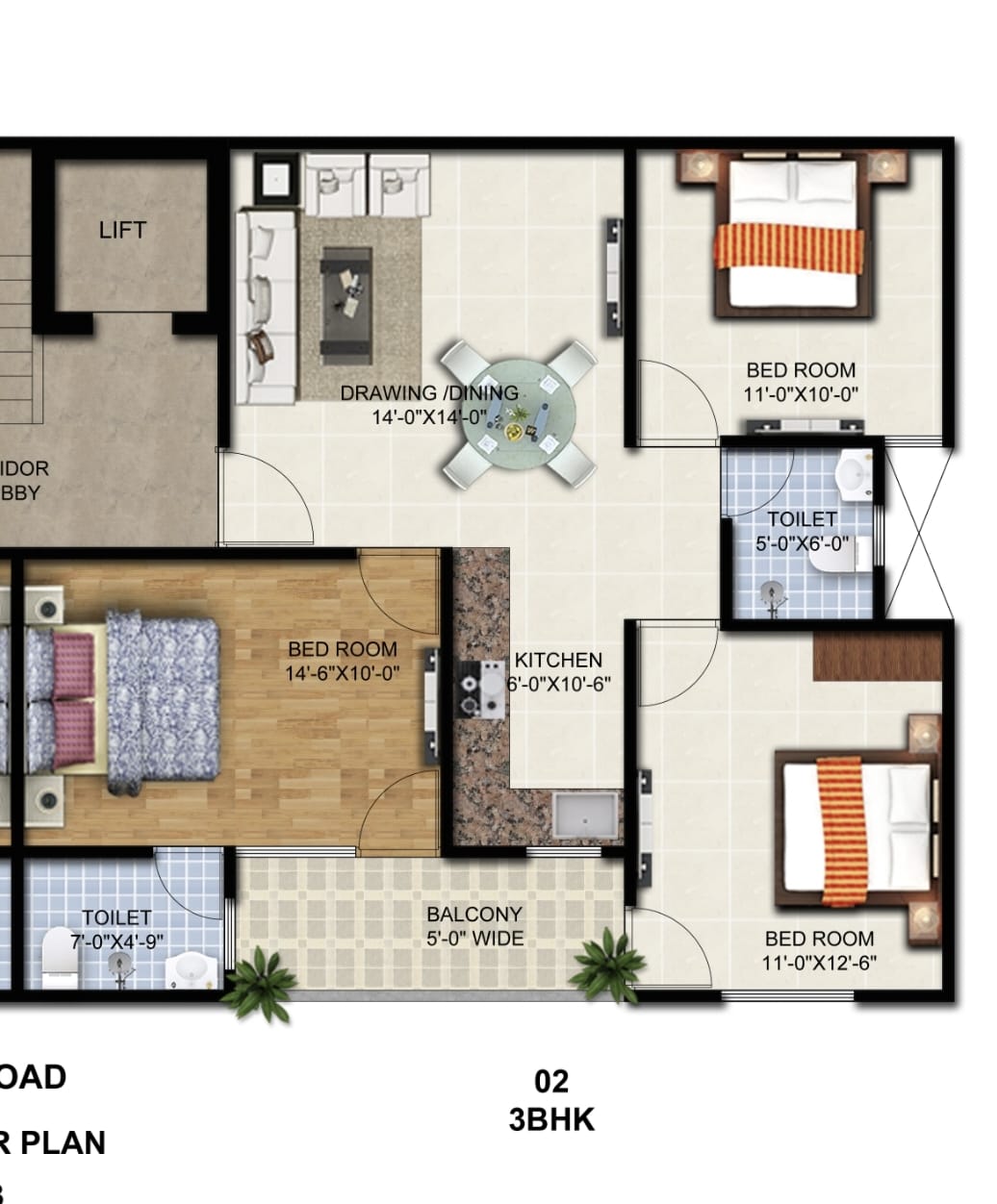 | 3 BHK + 3 T | 1550 SQFT. | On Request |
